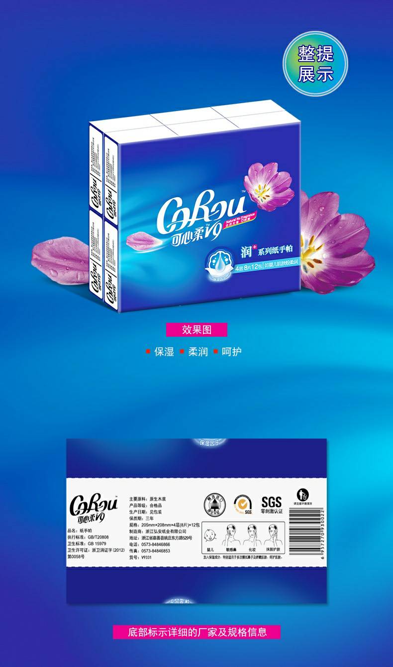 CoRou V9润+系列CoRou云柔系列白色木浆60抽